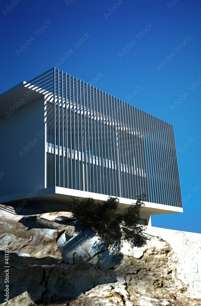 Luxury Living Room Interior With Seascape View. 3d Rendering