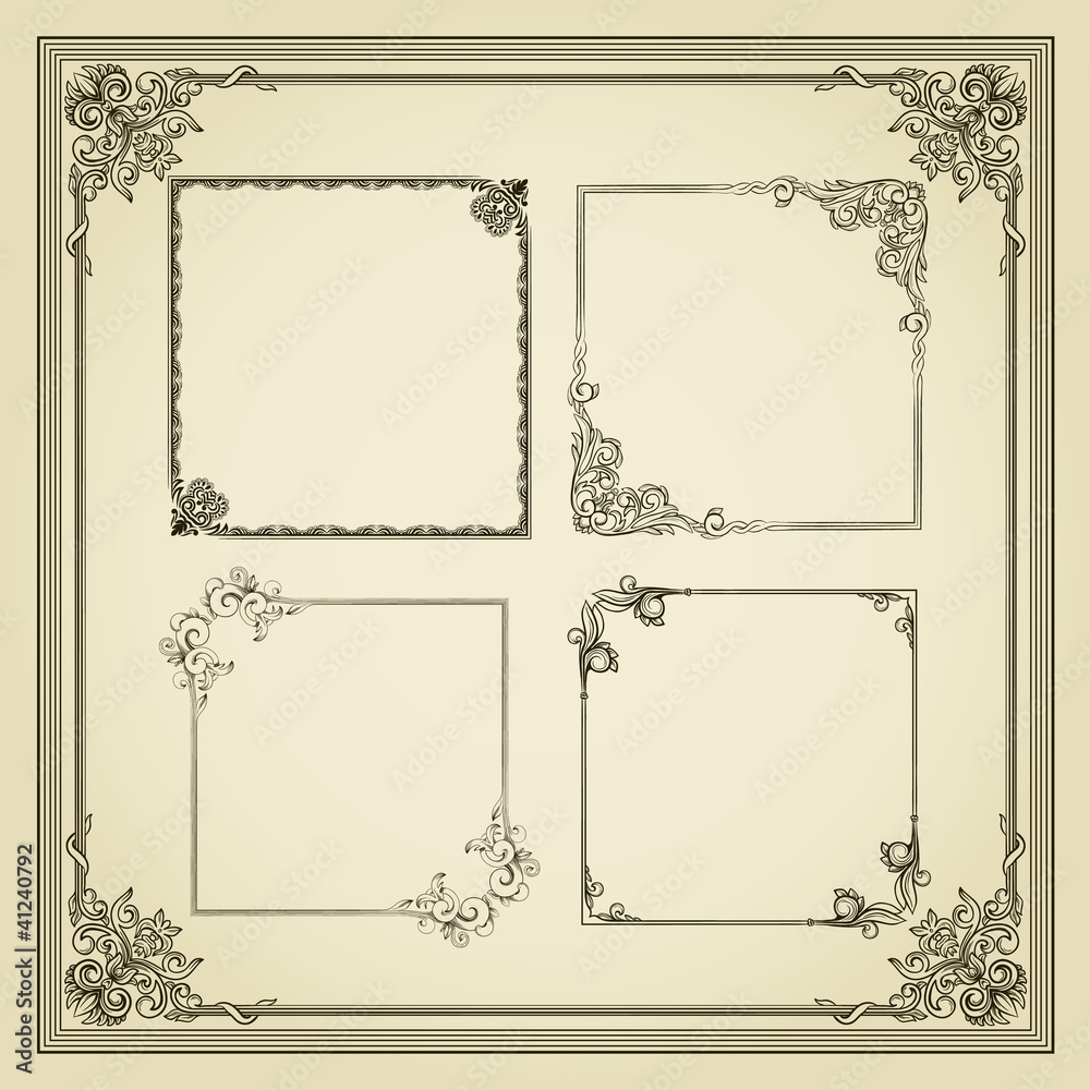 Set of Vintage Floral Frame Templates – Elegant Calligraphic Ornaments on White