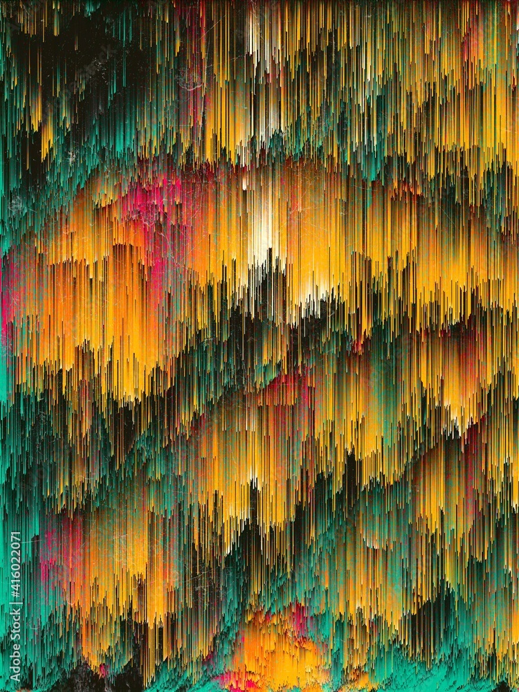 Abstract Digital Art, Bursting With Pixel-sorted Lines In Vibrant Pinks, Greens, And Blues, Creating A Dynamic, Modern, And Textured Visual.