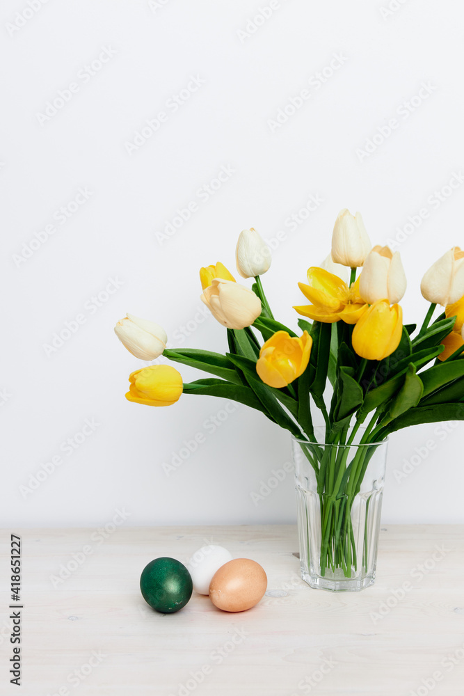 Easter Holiday Church Traditions Colorful Eggs And Yellow Wallpaper Mural - Decorly Solutions | Decorly Solutions