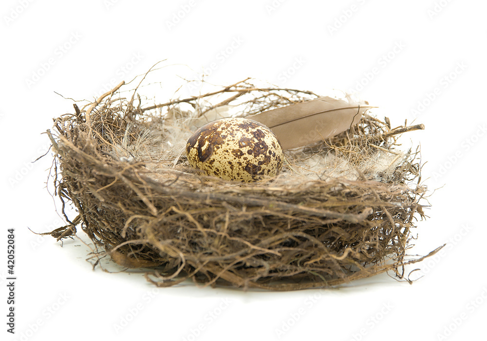 egg lies in a nest on a white background