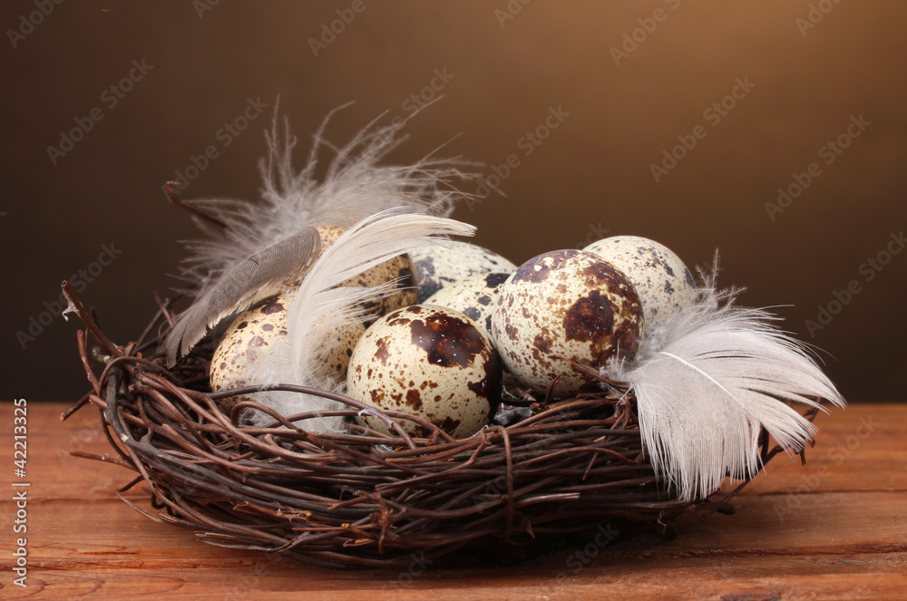 Quail Eggs In Nest On Wooden Table On Wallpaper Mural - Decorly Solutions | Decorly Solutions