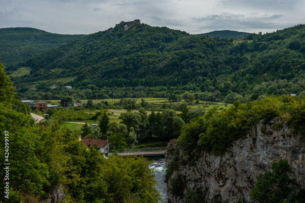 Aerial view of Mreznica river at sunset, Generalski Stol, Karlovac, Croatia.