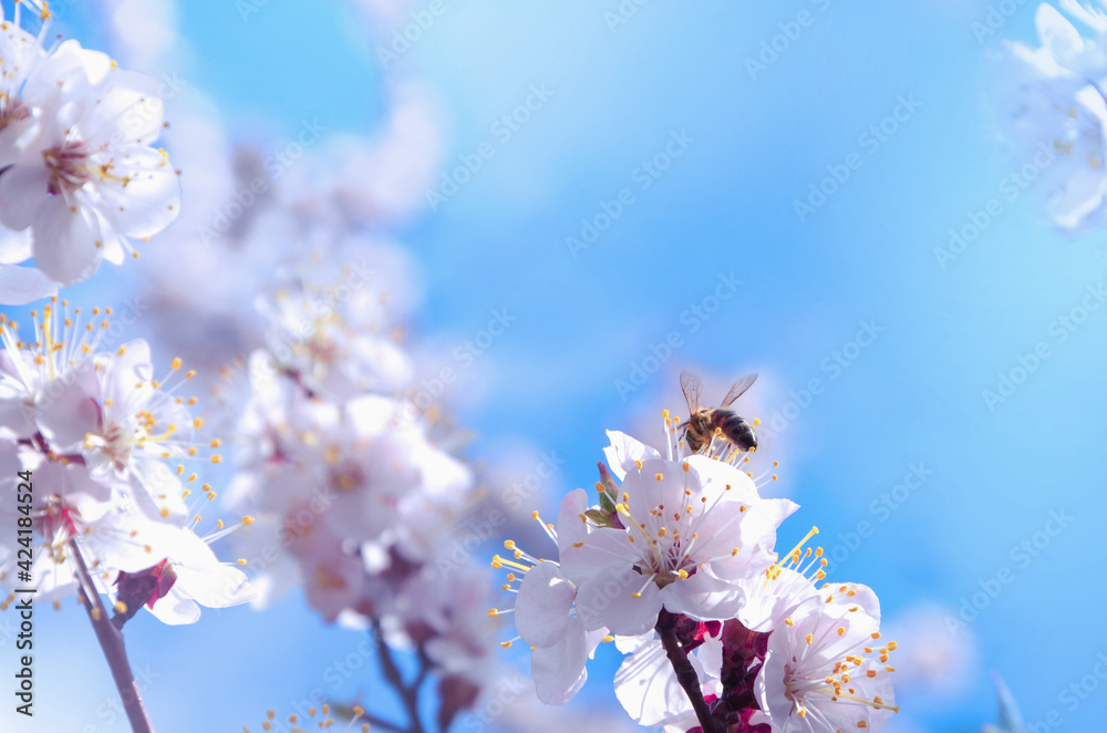 Apricot tree branches in flowers in spring.