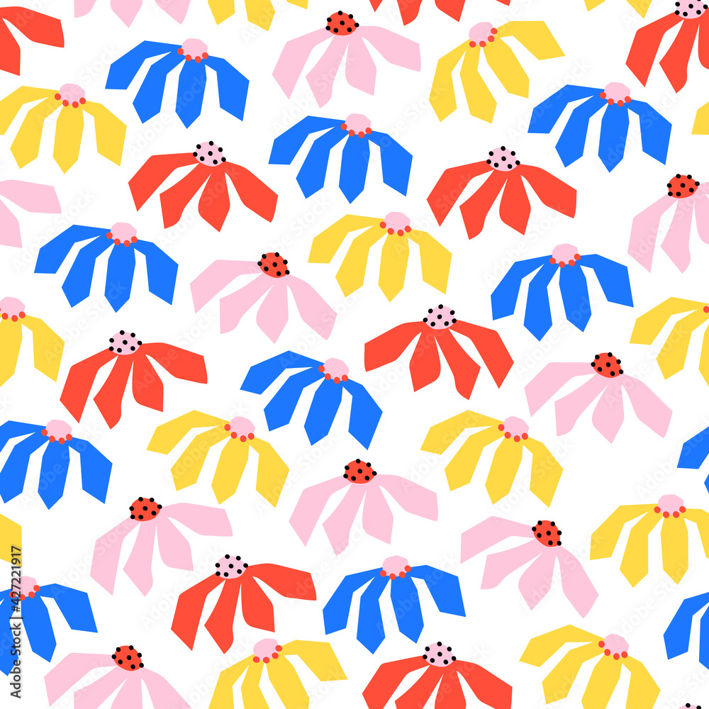 Flowers Seamless Vector Pattern Red Blue Yellow Pink Wallpaper Mural - Decorly Solutions | Decorly Solutions