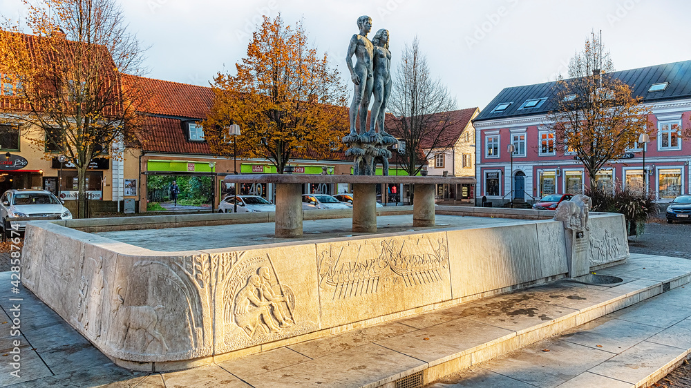 Solvesborg Bronze Sculpture on Stone Fountain Wallpaper