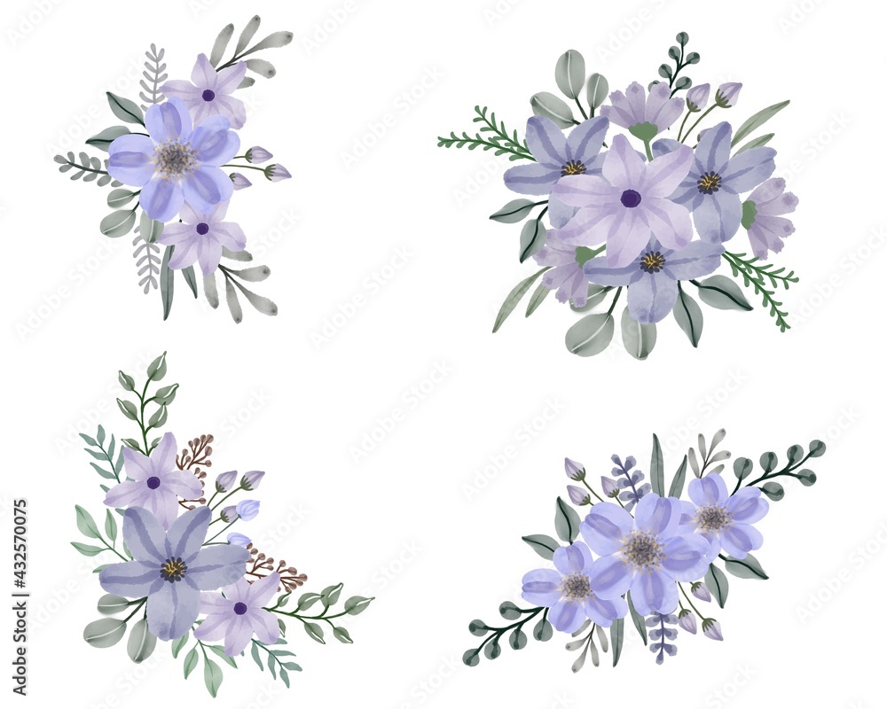 Arrangement Of Watercolor Floral Frame Bouquets Of Purple Wallpaper Mural - Decorly Solutions | Decorly Solutions