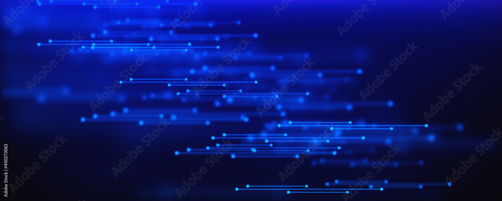 Abstract futuristic wave with moving dots and lines. Flow of particles. Cyber technology illustration. 3d rendering