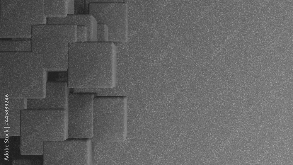 Black mosaic background. Random cubes backdrop. geometric illustration. Square shapes patterns. Architectural abstraction. Interior concept. Business or corporate decoration