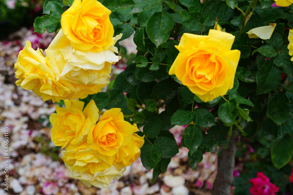 Yellow Carte D Or Rose Flower Growing In Wallpaper Mural - Decorly Solutions | Decorly Solutions