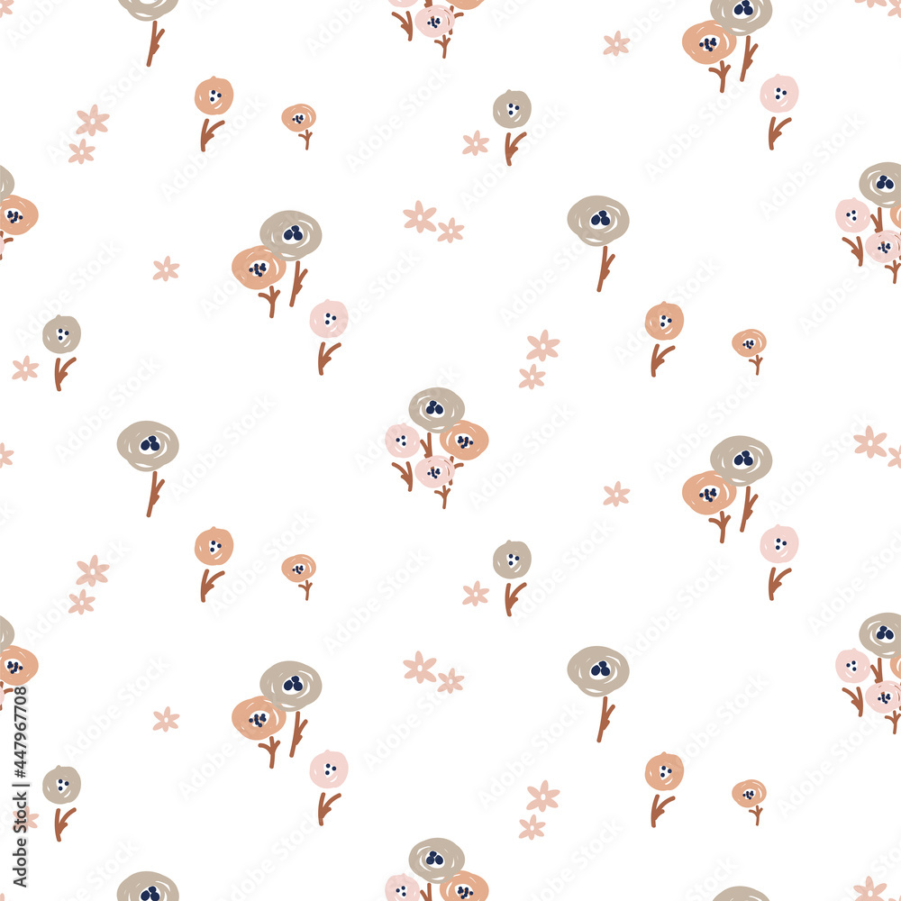 Pale Vector Seamless Vintage Floral Pattern Rustic Flowers Wallpaper Mural - Decorly Solutions | Decorly Solutions