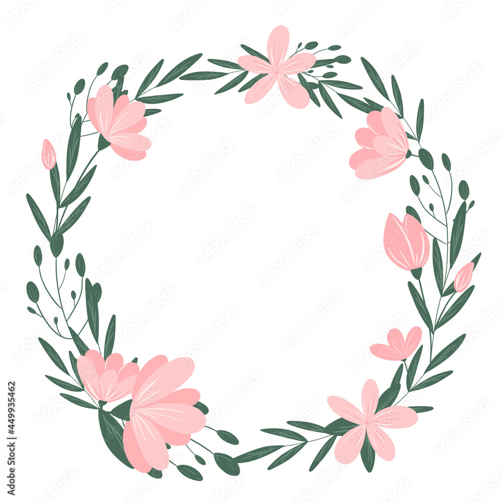 Pink Flowers Round Wreath Isolated On White Background Wallpaper Mural - Decorly Solutions | Decorly Solutions