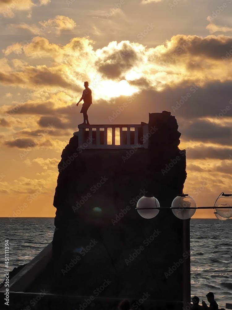 Sunset Silhouette: A Solitary Figure Contemplates the Vast Ocean from a Clifftop