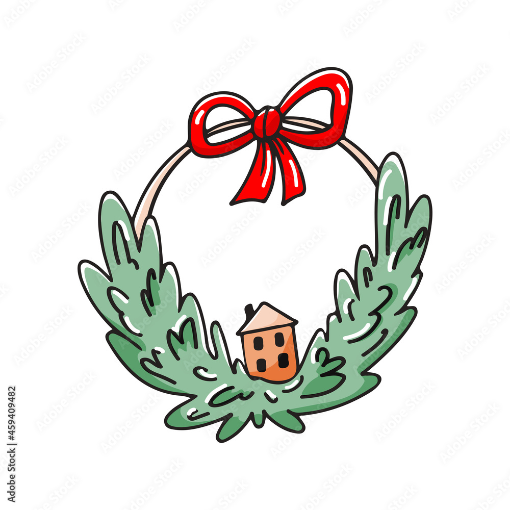 Christmas Wreath Icon From Branches With A Bow Wallpaper Mural - Decorly Solutions | Decorly Solutions