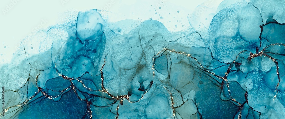 abstract fluid art painting with alcohol ink, liquid design illustration with gold paths, wallpaper background with luxury decoration elements