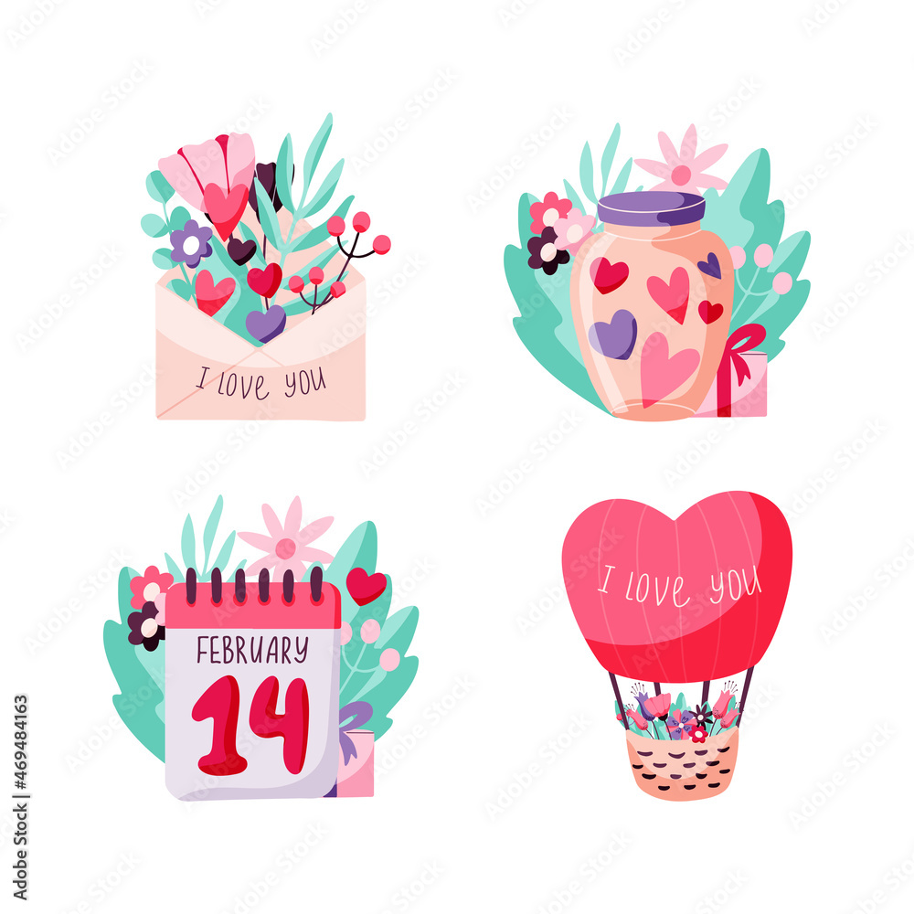Valentine S Day Set Of Concepts With Envelope Wallpaper Mural - Decorly Solutions | Decorly Solutions