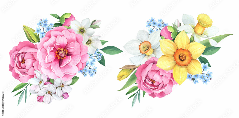 Watercolor Illustration Spring Bouquet On A White Background Wallpaper Mural - Decorly Solutions | Decorly Solutions