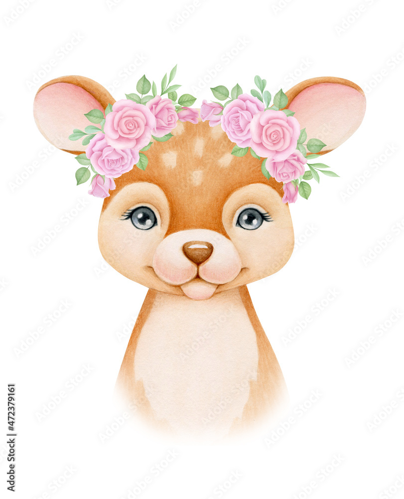 Baby Deer And Roses Hand Drawn Cute Fawn Wallpaper Mural - Decorly Solutions | Decorly Solutions