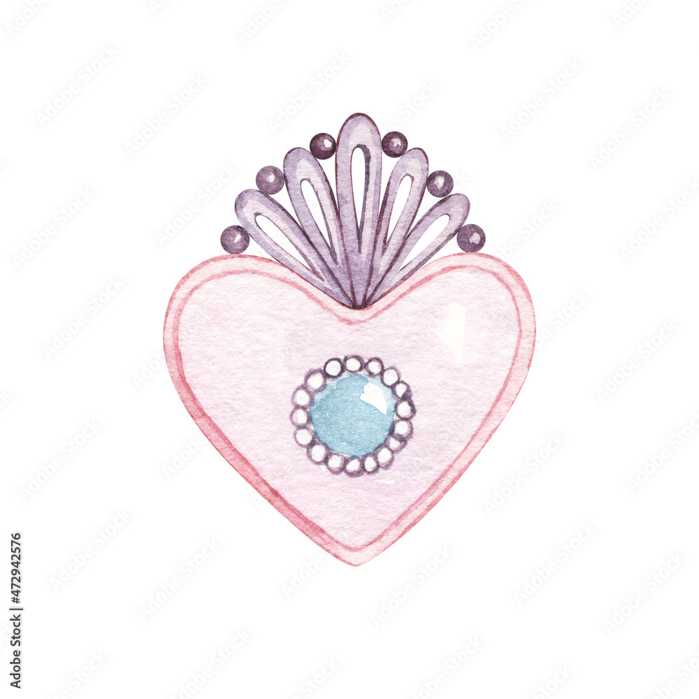Watercolor Set Of Provence Brooch Heart Pendant Precious Wallpaper Mural - Decorly Solutions | Decorly Solutions