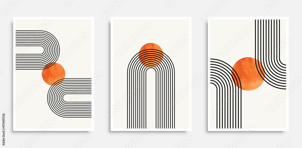 retro mid century modern poster set, abstract vector illustration, minimalist design featuring line art and geometric shapes composition, A3 prints and backgrounds