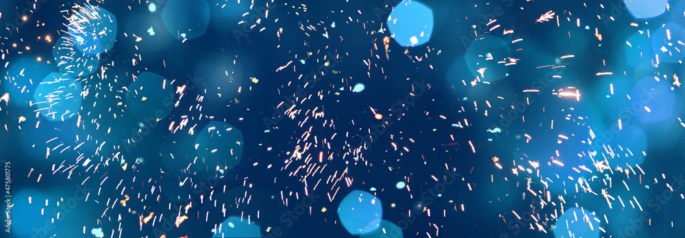 Panoramic Blue Festive Background Of Firework Wallpaper Mural - Decorly Solutions | Decorly Solutions