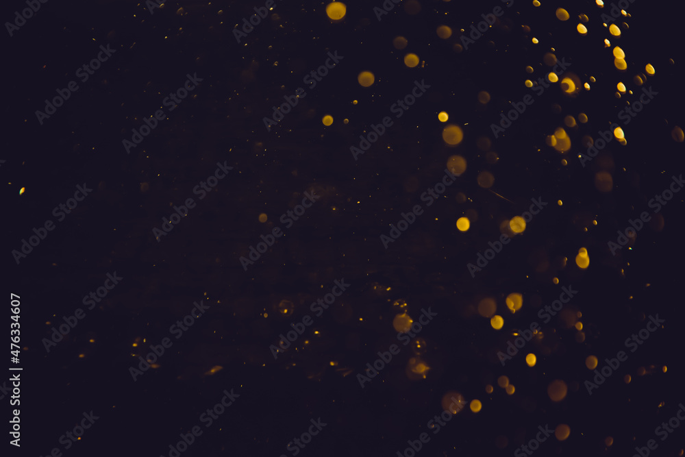 bokeh of water fly and lights on black background,