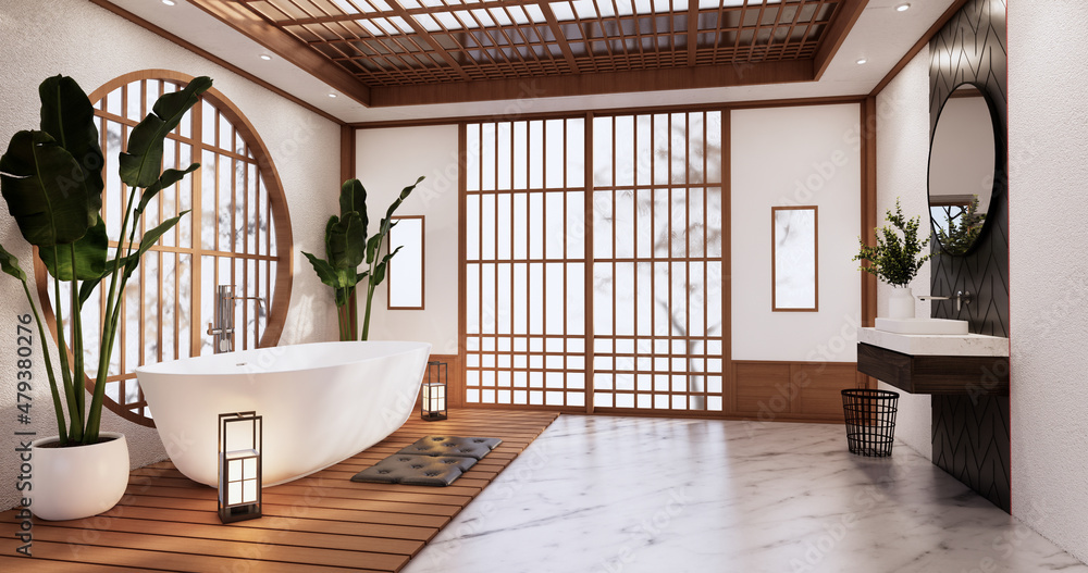 The Bath On Empty Room Interior Japanese Style Wallpaper Mural - Decorly Solutions | Decorly Solutions