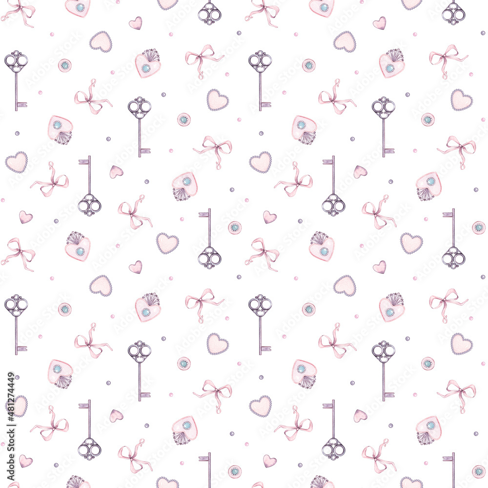 Watercolor Seamless Wedding Day Pattern With Key Brooch Wallpaper Mural - Decorly Solutions | Decorly Solutions