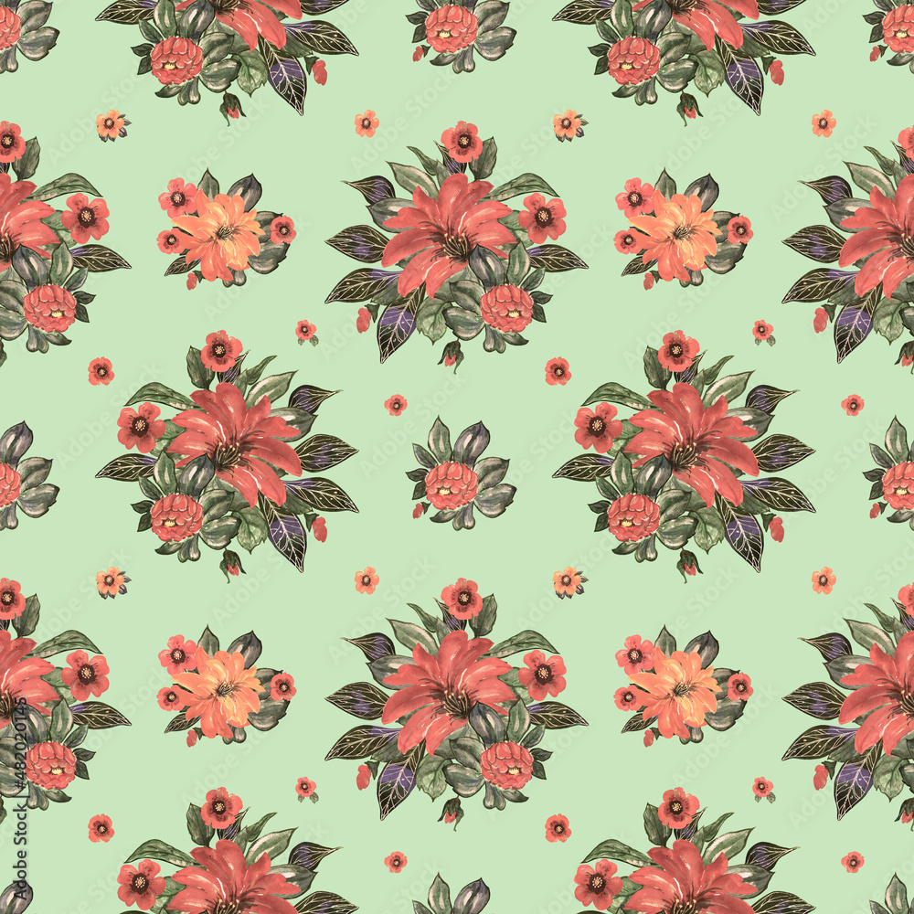 Seamless watercolour and unique floral pattern background for covers, notes, banner. Soft backgrounds colour. Watercolour art work. Flower stalk. Colourful flower.