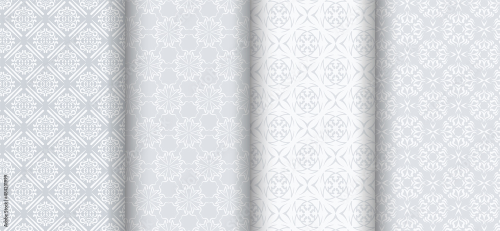 Set Of Background Wallpapers With Ornaments On A White, Vector Image