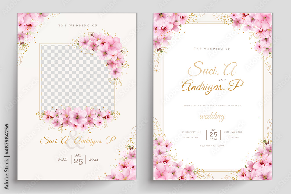 romantic  Wedding invitation card template set with  beautiful  floral leaves Premium Vector