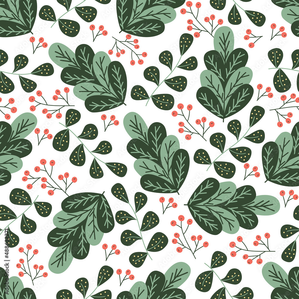 Abstract Pattern With Stylized Green Leaves Branches And Wallpaper Mural - Decorly Solutions | Decorly Solutions