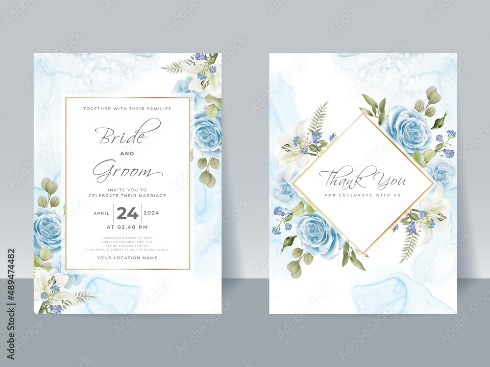 Hand Drawing Blue Roses Wedding Invitation Card Wallpaper Mural - Decorly Solutions | Decorly Solutions