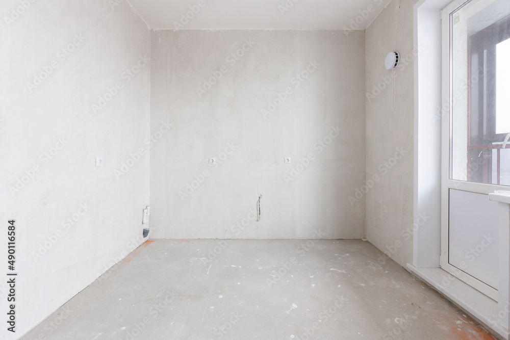 Interior Of The Apartment Without Decoration In Gray Colors. Rough Finish
