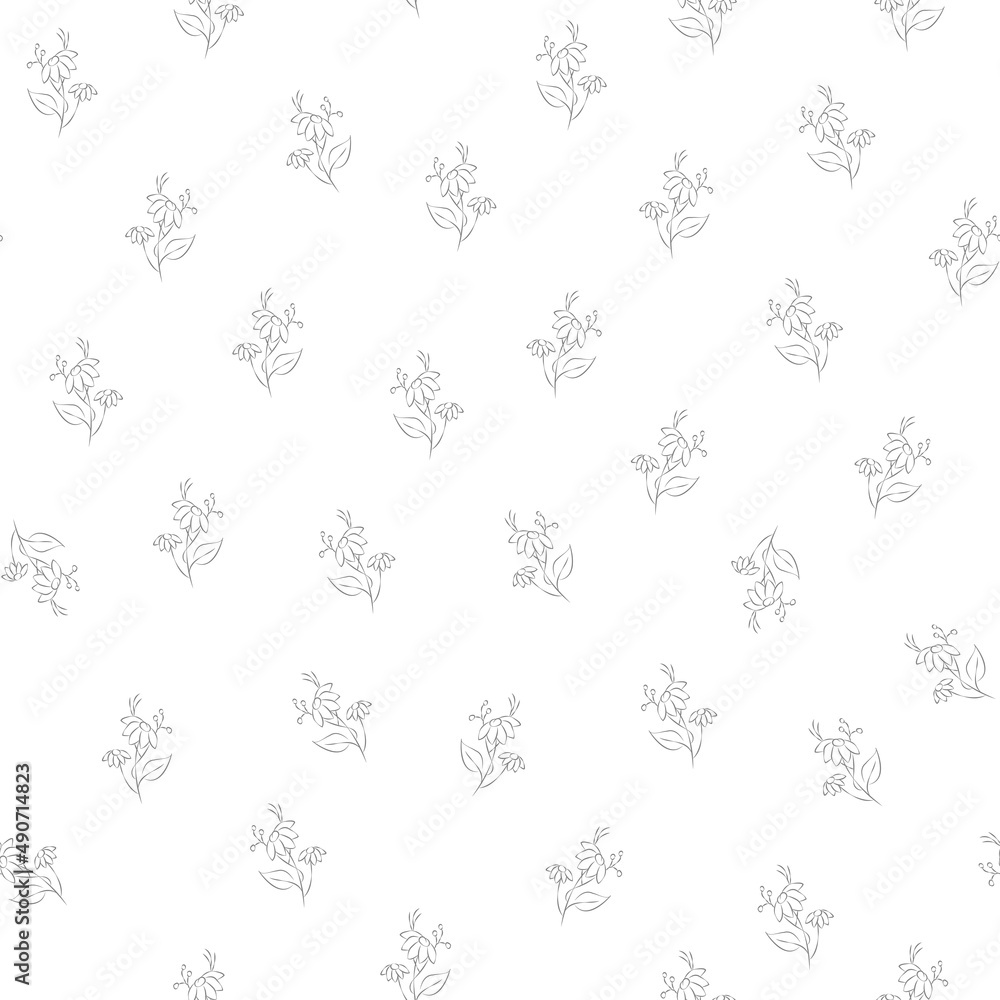 Vector Gray And White Illustration Floral Seamless Pattern Wallpaper Mural - Decorly Solutions | Decorly Solutions