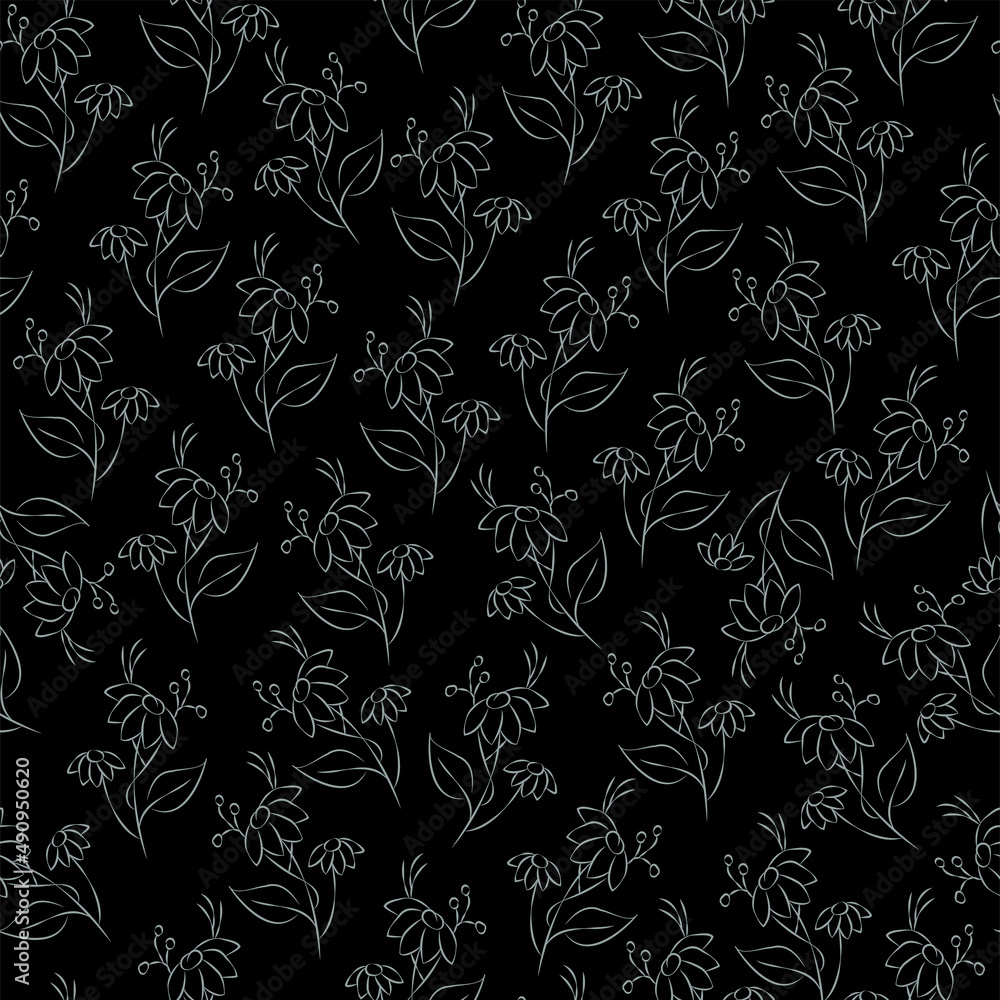 Vector Green Gray Illustration Floral Seamless Pattern Bouquet Wallpaper Mural - Decorly Solutions | Decorly Solutions