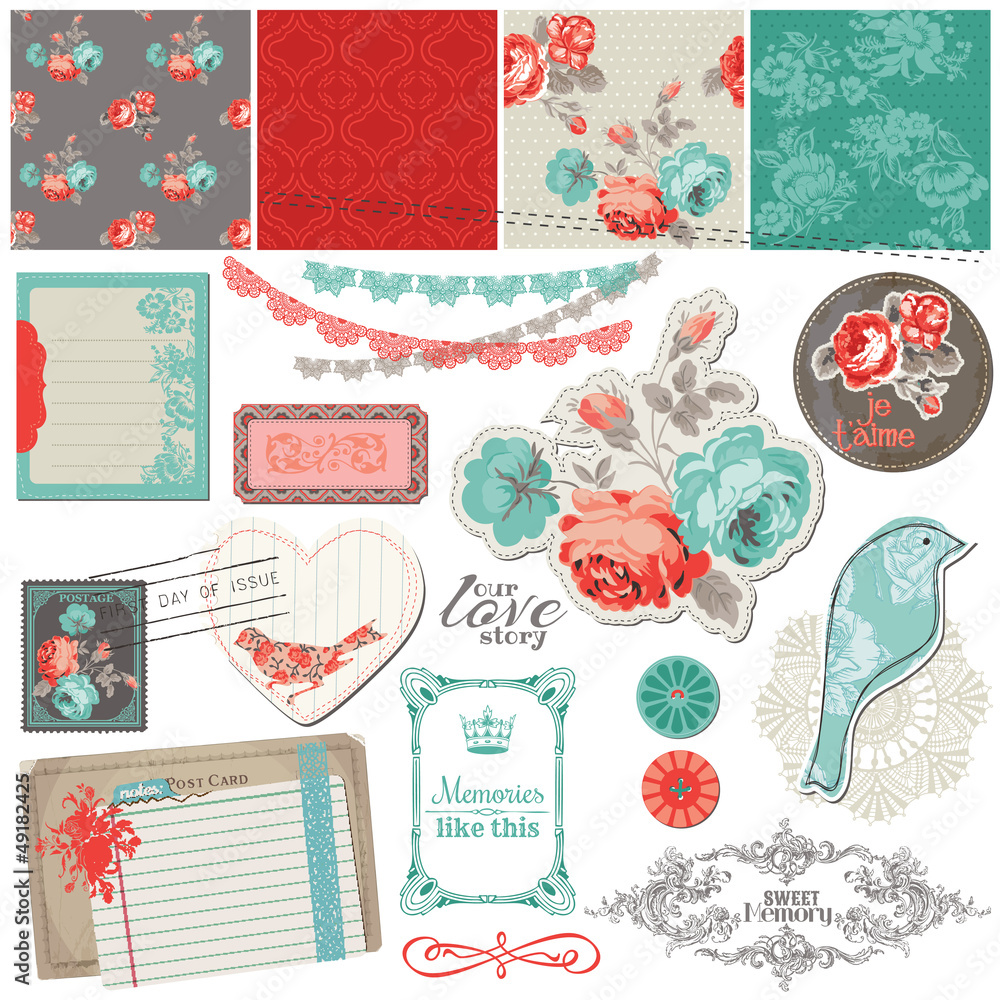 Scrapbook Design Elements - Vintage Roses and Birds - in vec Wallpaper