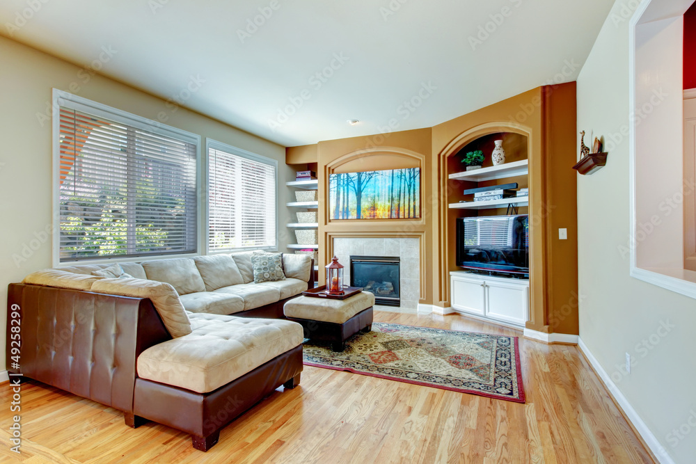Living Room With Fireplace And Hardwood Floor Wallpaper Mural - Decorly Solutions | Decorly Solutions