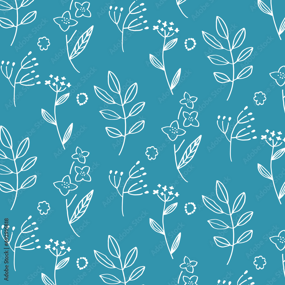 seamless green pattern with white tropical palm leaves and fruits for food and cafe related surface design