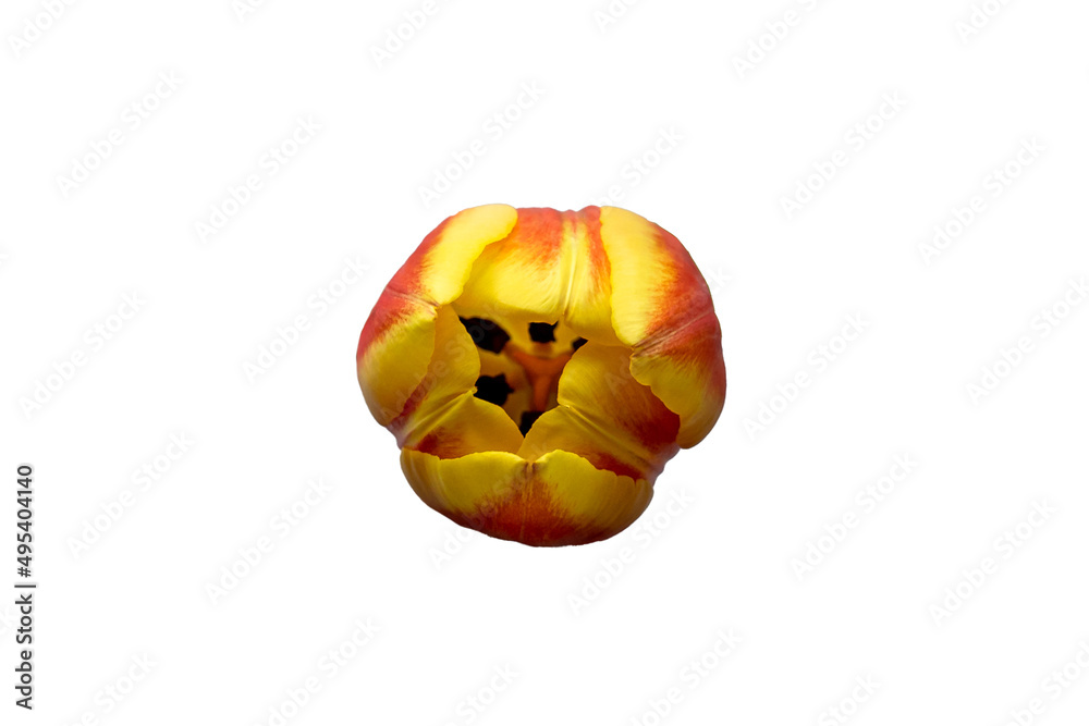 Orange and yellow tulip flower isolated on white background Wallpaper