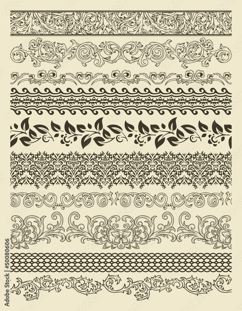 Scalloped lace border vector set. Floral embroidery pattern with ornate trim and vintage blossom mesh. Decorative ribbon illustration for elegant wedding, festive branding, packaging, christmas cards.