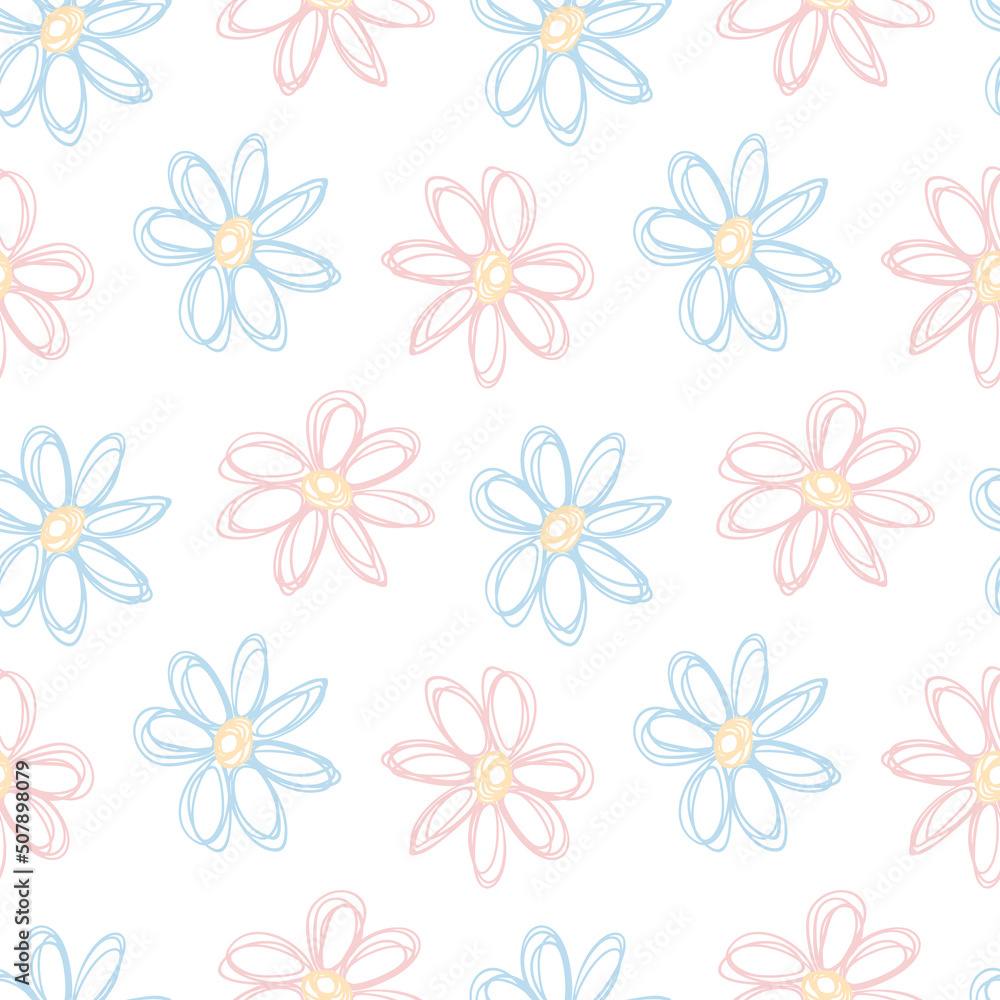Hand Drawn Pastel Kids Flowers Lines Seamless Pattern Wallpaper Mural - Decorly Solutions | Decorly Solutions