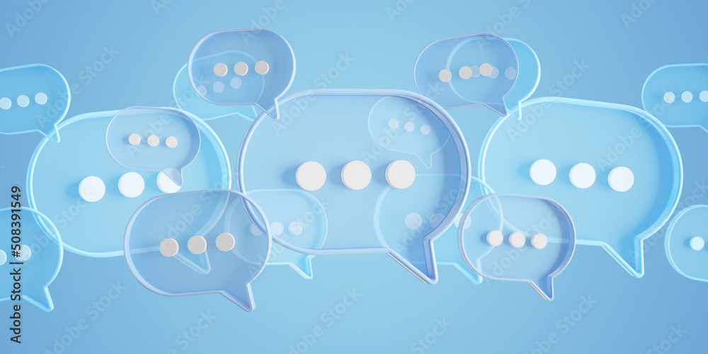 Minimalist Blue Speech Bubbles Talk Icons Floating Over Wallpaper Mural - Decorly Solutions | Decorly Solutions