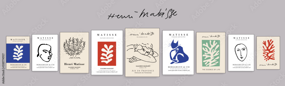 Matisse Abstract Art Set, Aesthetic Modern Art, Boho Decor, Minimalist Art, Illustration, Vector, Poster, Postcard. Collection for decoration. Vector all isolated. Set of abstract trendy creative art.