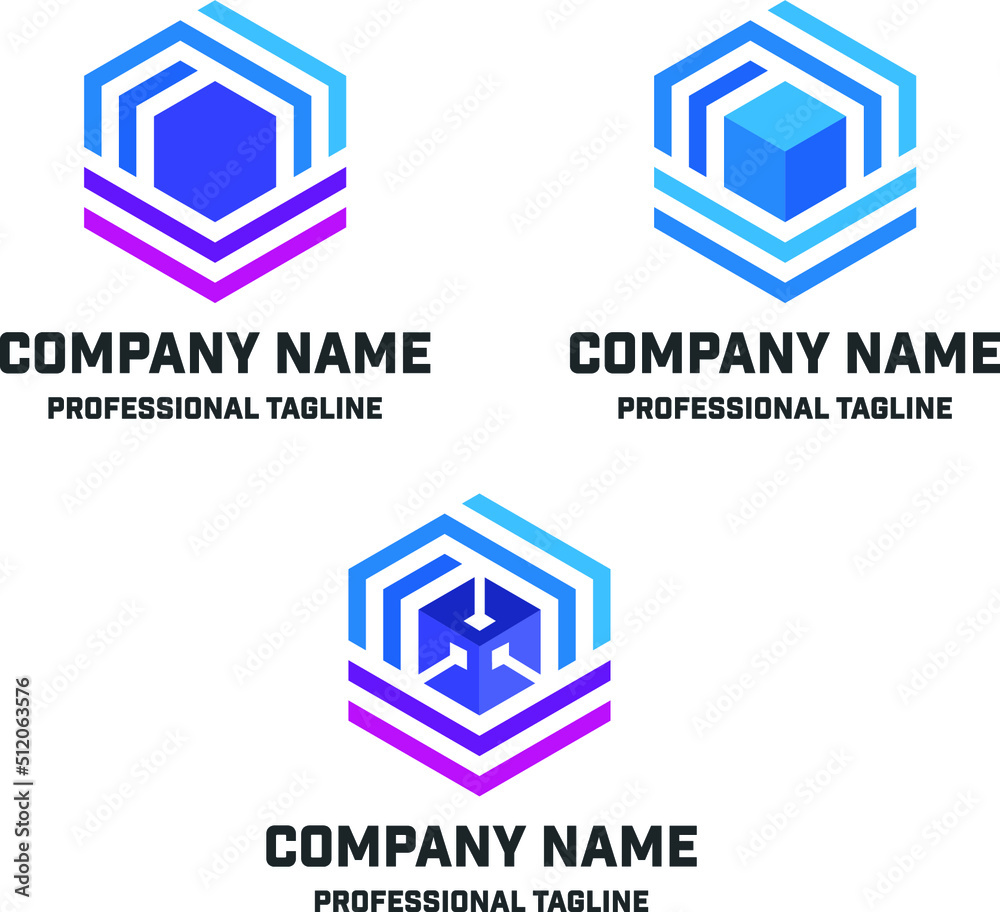 Hexagon logo design. Letter T in cube illustration sign. Outline polygonal letters vector icons.
