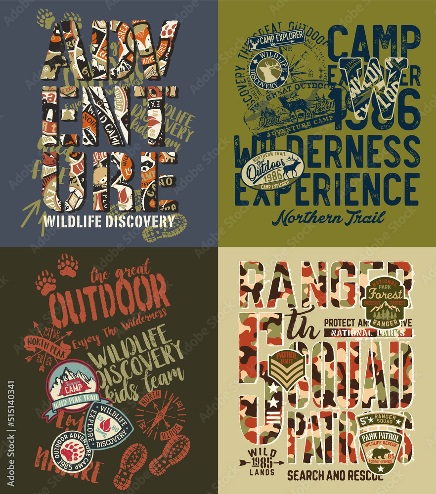 North lands discovery great outdoor adventure vintage badges collection vintage vector print or embroidery  for kids boy man sport wear shirt sweatshirt