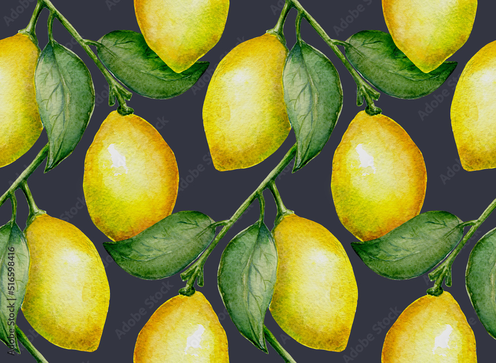 Watercolor Seamless Pattern Of Ripe Yellow Lemons With Wallpaper Mural - Decorly Solutions | Decorly Solutions