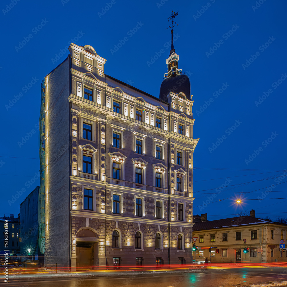 Night Cityscape Of Riga Lights On Long Exposure Wallpaper Mural - Decorly Solutions | Decorly Solutions