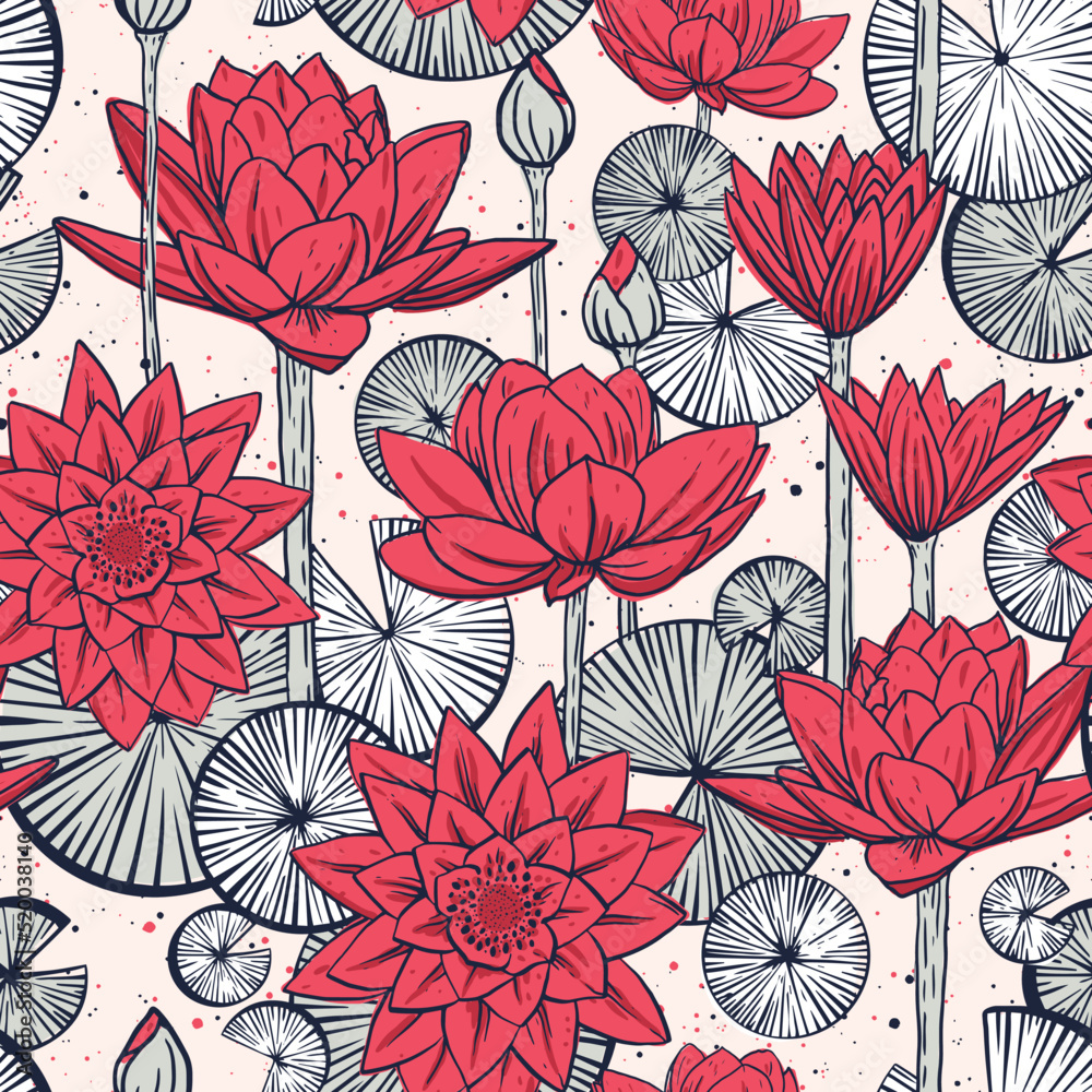 Vector seamless pattern with water lilies lotus flowers Wallpaper