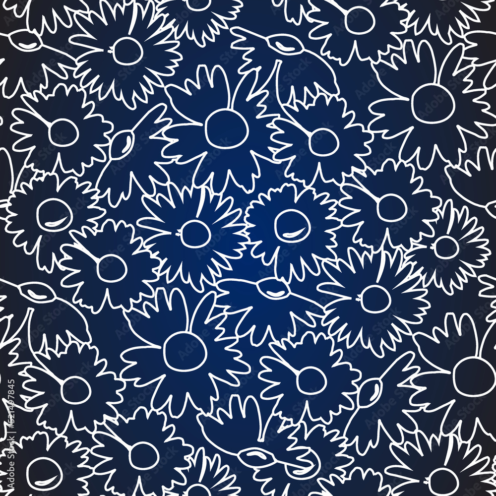The Chamomile Flower Hand-drawn Contours Of Daisies Seamless Wallpaper Mural - Decorly Solutions | Decorly Solutions
